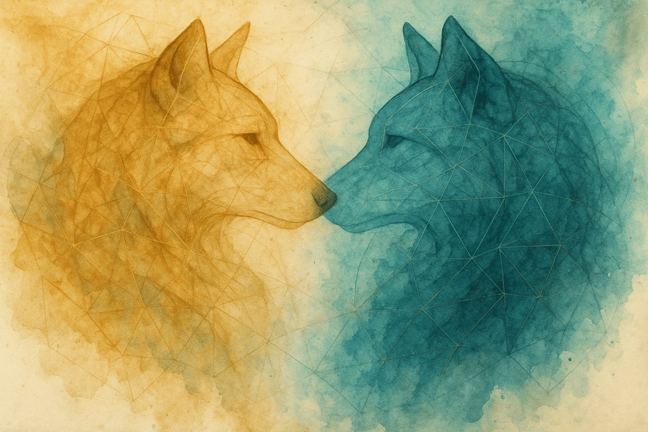 “An elder tells his grandson of two wolves battling endlessly within us. One wolf represents ego, pride, vanity, fear; the other embodies authenticity, empathy, courage—an insatiable hunger for real growth. When the grandson asks, ‘Which wolf wins?’ the elder quietly replies, ‘The one you feed.’”